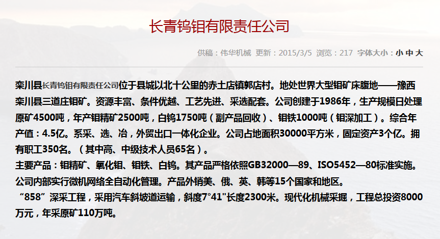 • 合作單位:江西都昌金鼎鎢鉬礦業有限公司